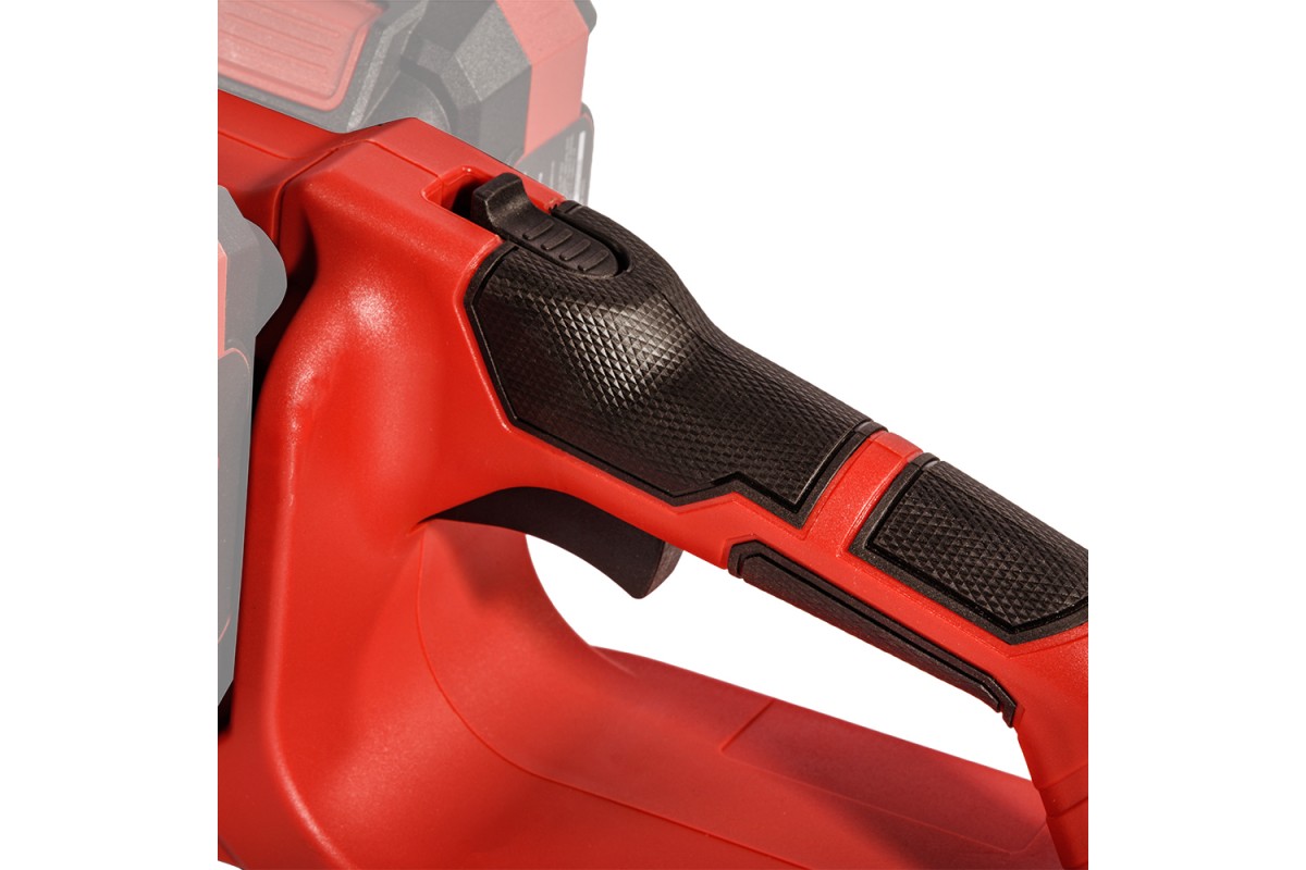 Система плавного пуску – створює поступовий рух ланцюга без різких ривків, що знижує ризик втрати контролю над інструментом. Плавний пуск робить роботу приємнішою та зручнішою, інструмент не смикається під час увімкнення, що особливо корисно під час роботи у важкодоступних місцях або на висоті.