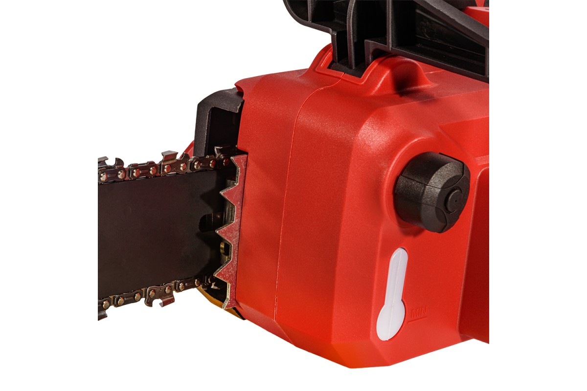 Система плавного пуску – створює поступовий рух ланцюга без різких ривків, що знижує ризик втрати контролю над інструментом. Плавний пуск робить роботу приємнішою та зручнішою, інструмент не смикається під час увімкнення, що особливо корисно під час роботи у важкодоступних місцях або на висоті.