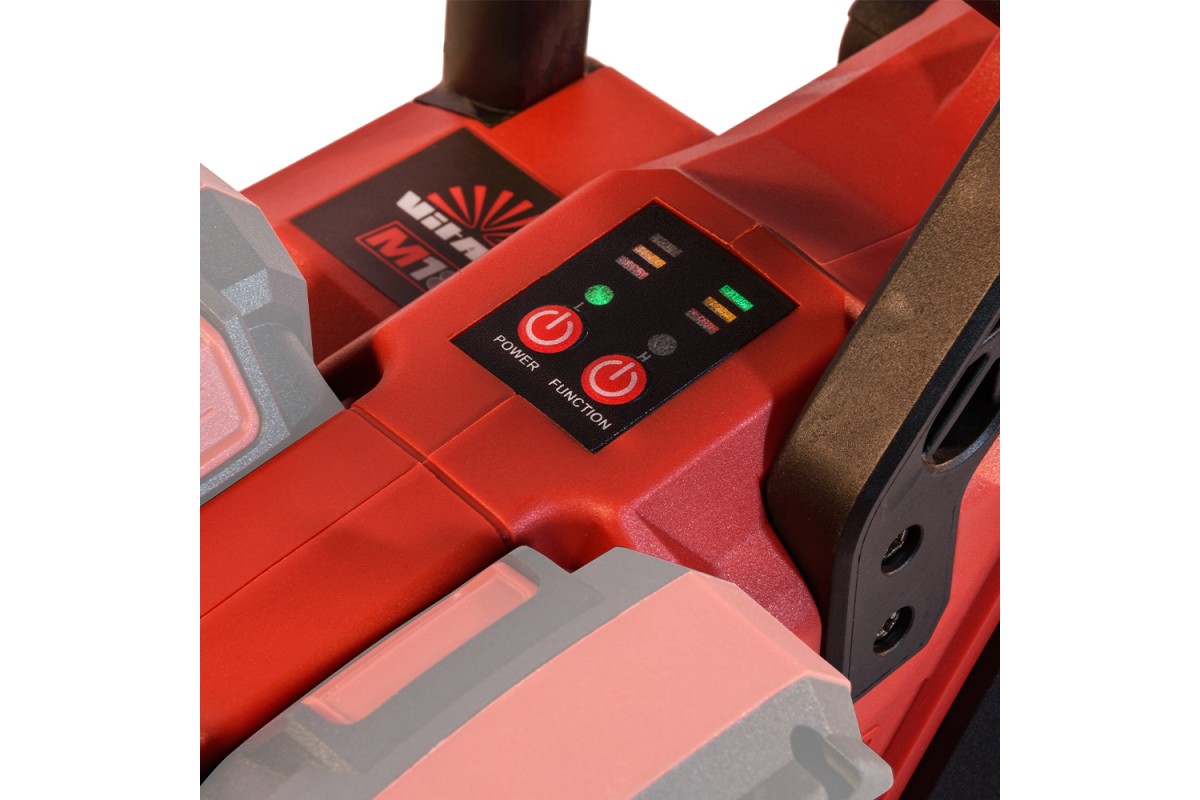 Контрольна панель дозволяє обирати потрібний режим швидкості, відстежувати рівень заряду для кожної підключеної акумуляторної батареї (лівої та правої) й планувати роботу без непередбачуваних зупинок.