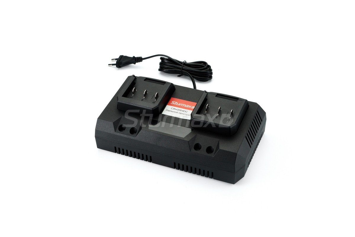 | 3 | Sturmax CRM2004DС | Для одночасної зарядки двох акумуляторів (сумісно з АКБ CRM2002B, CRM2004B, CRM2006B) |