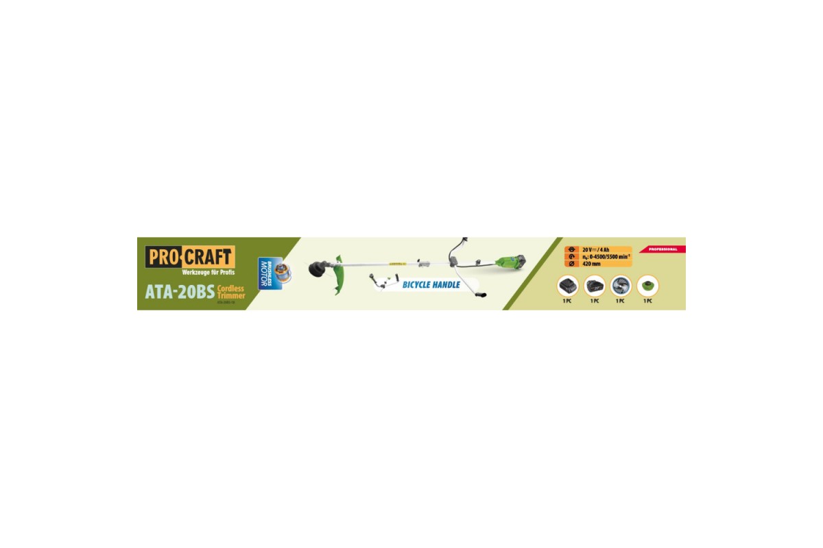 Аккумуляторный триммер Procraft ATA20BS (1 АКБ и ЗУ) велосипедная ручка