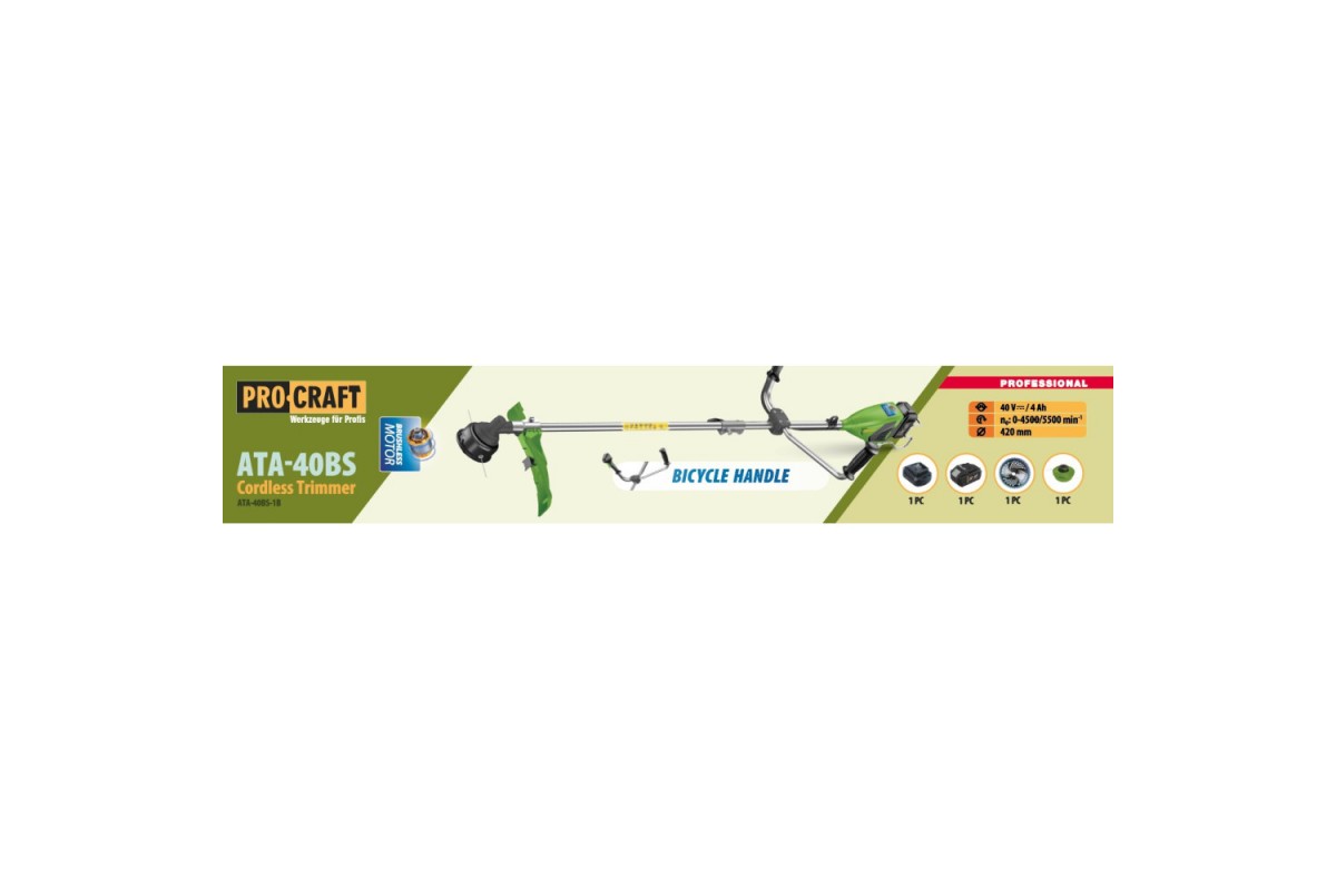 Аккумуляторный триммер Procraft ATA40BS (1 АКБ и ЗУ) велосипедная ручка