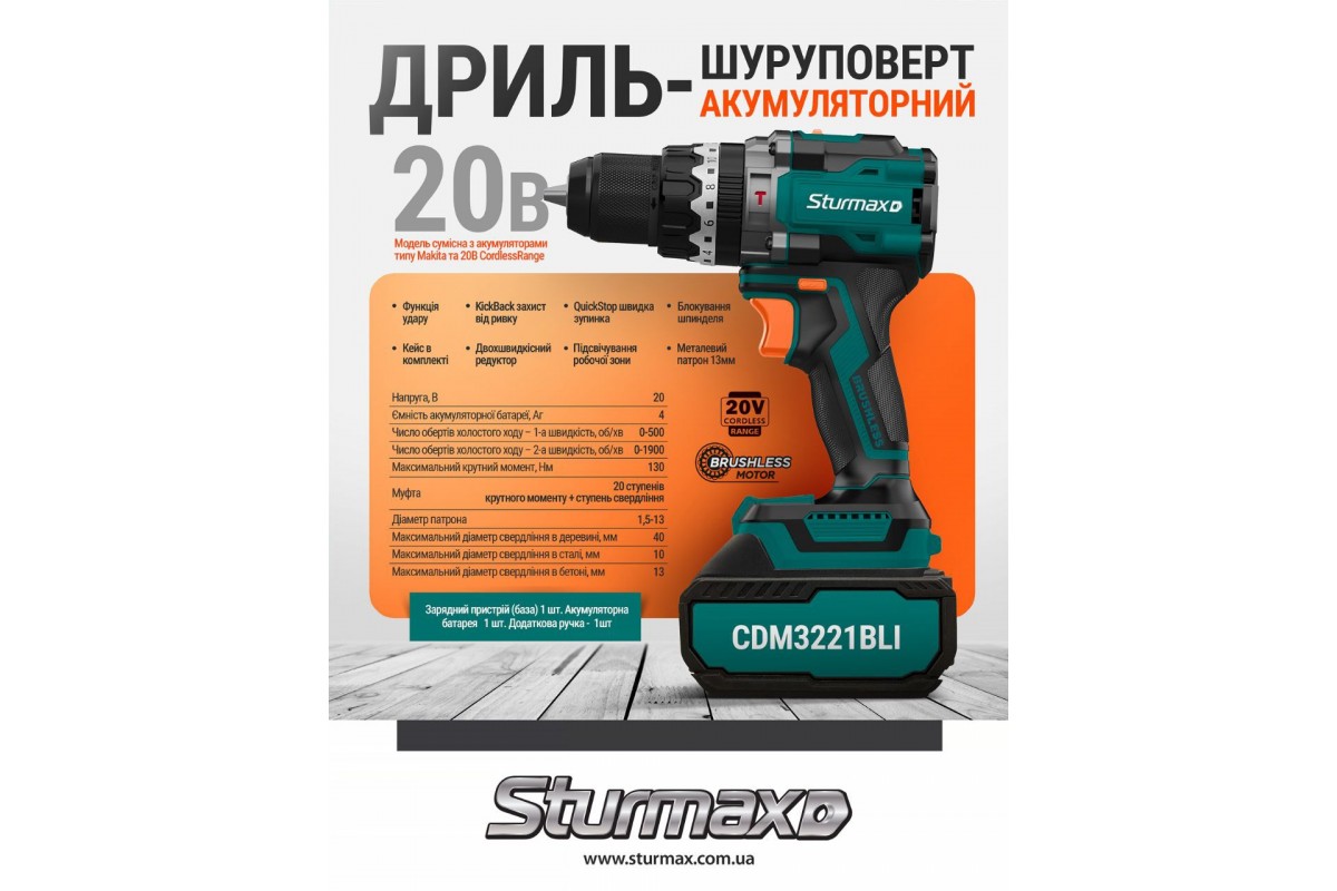 Sturmax CDM3221BLI Дриль-шурупокрут акум. 20В, без акумулятора та зарядного – Sturmax