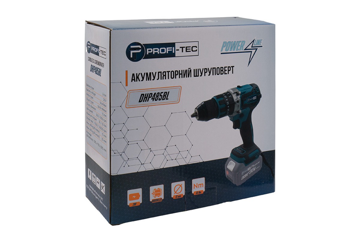- Акумуляторний дриль-шуруповерт PROFI-TEC DHP485BL;