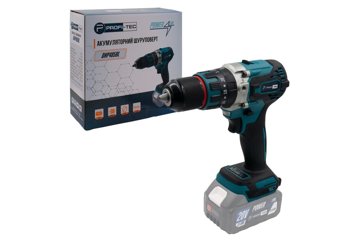 Акумуляторний дриль-шуруповерт PROFI-TEC DHP485BL POWERLine (без акумулятора та зарядного пристрою)