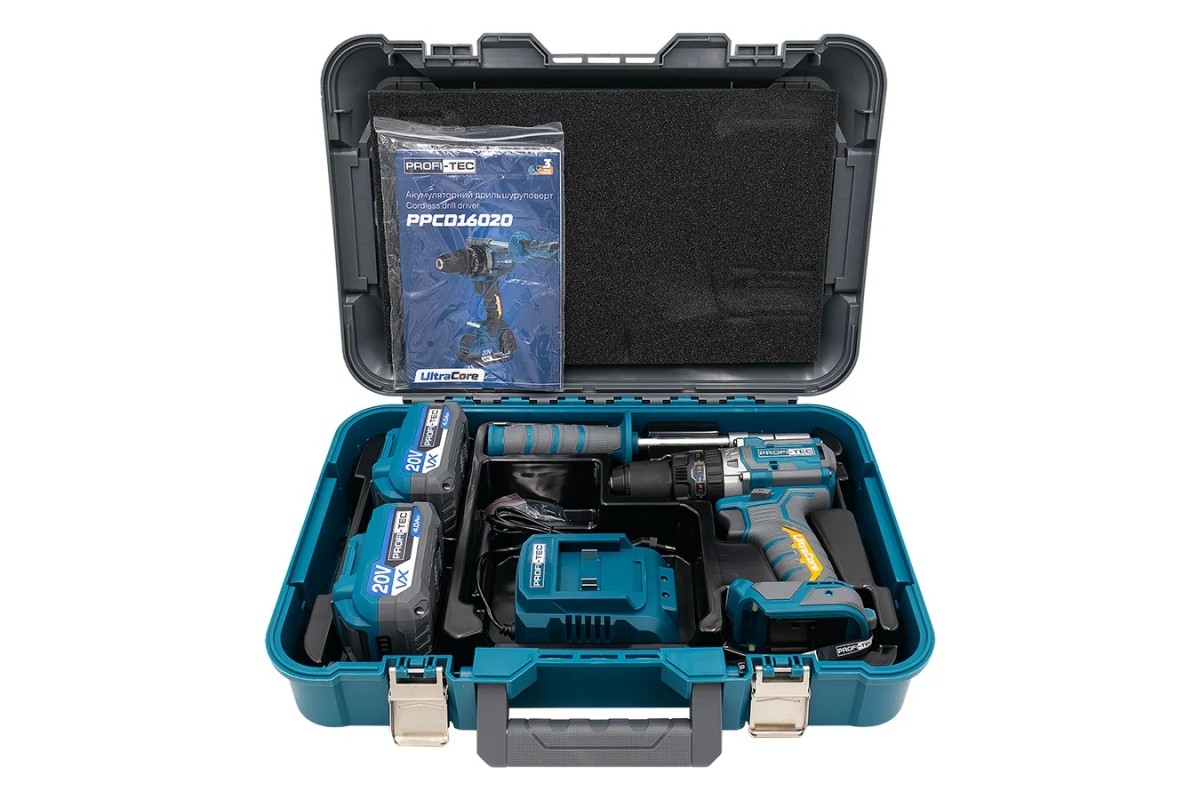 Акумуляторний дриль-шуруповерт PROFI-TEC PPCD16020 UltraCore (2×PT2040VX (4.0 Аг), зарядний пристрій)