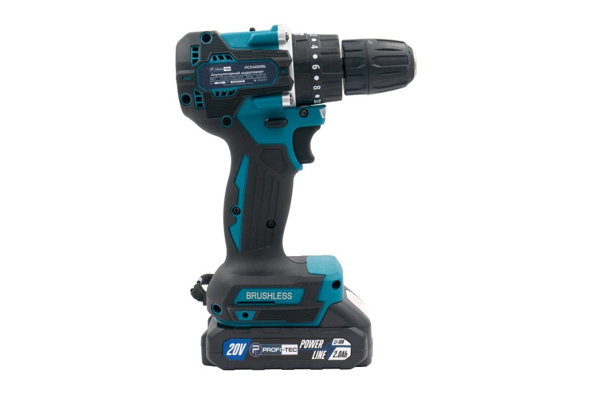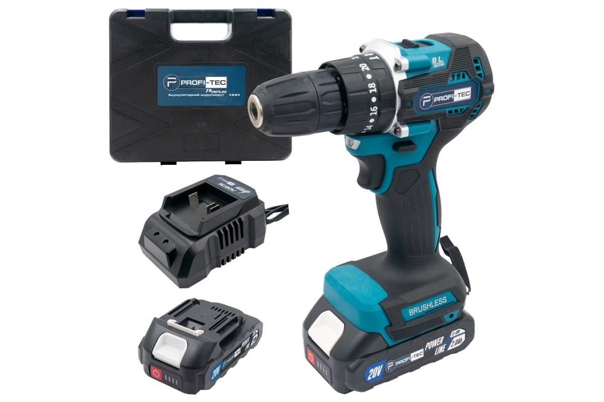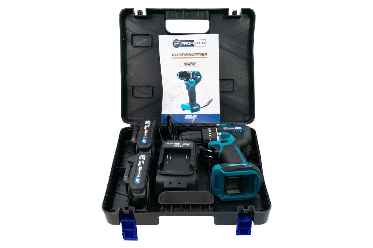 Акумуляторний шуруповерт PROFI-TEC PCD4020BL POWERLine (2×PT2020MP (2.0 Аг), зарядний пристрій)
