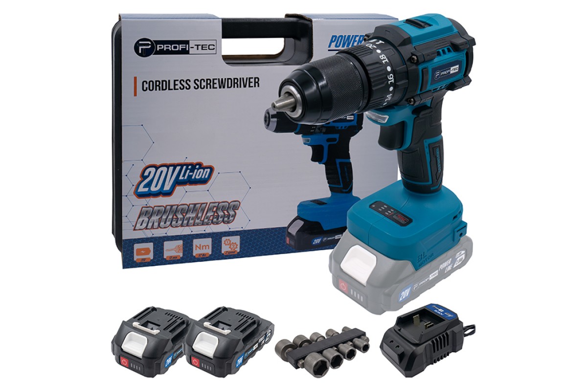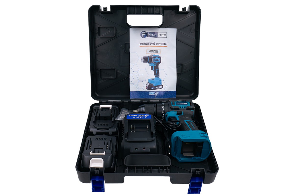 Акумуляторний шуруповерт PROFI-TEC PCD5220 POWERLine (2×PT2020MP (2.0 Аг), зарядний пристрій)