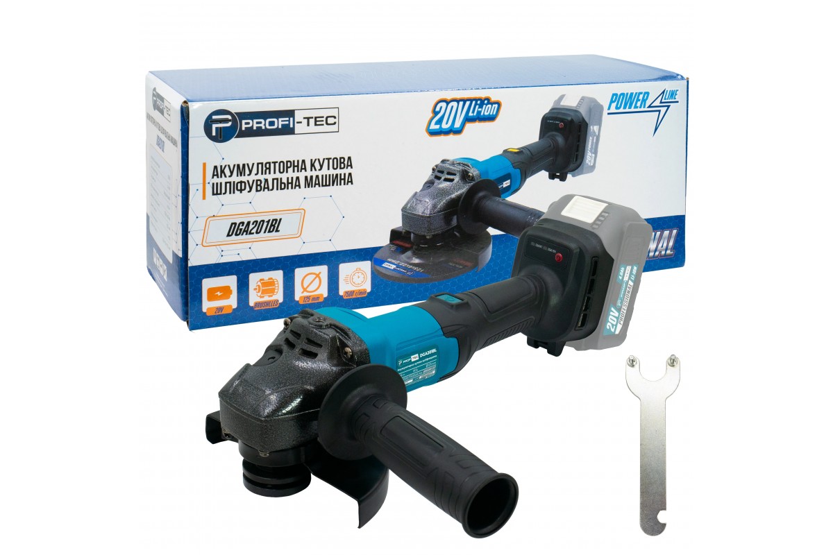 - Акумуляторна кутова шліфувальна машина PROFI-TEC DGA201BL;