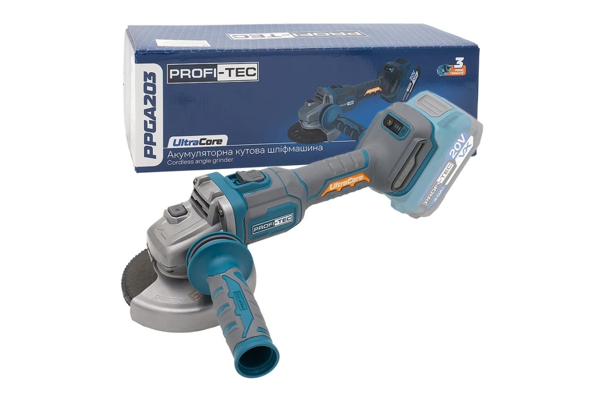 Акумуляторна кутова шліфувальна машина PROFI-TEC PPGA203 UltraCore (без акумулятора та зарядного пристрою)