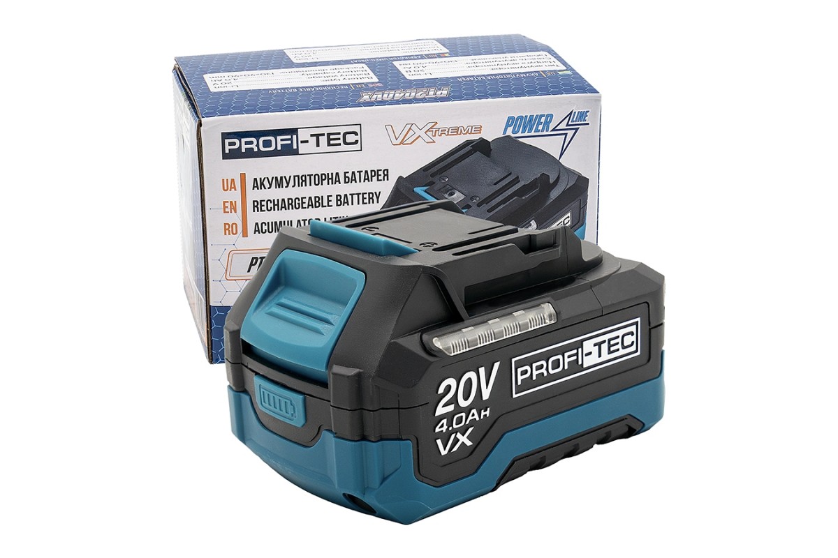 Акумуляторна батарея PROFI-TEC PT2040VX POWERLine (20 В / 4.0 Аг, високострумова, з індикатором)