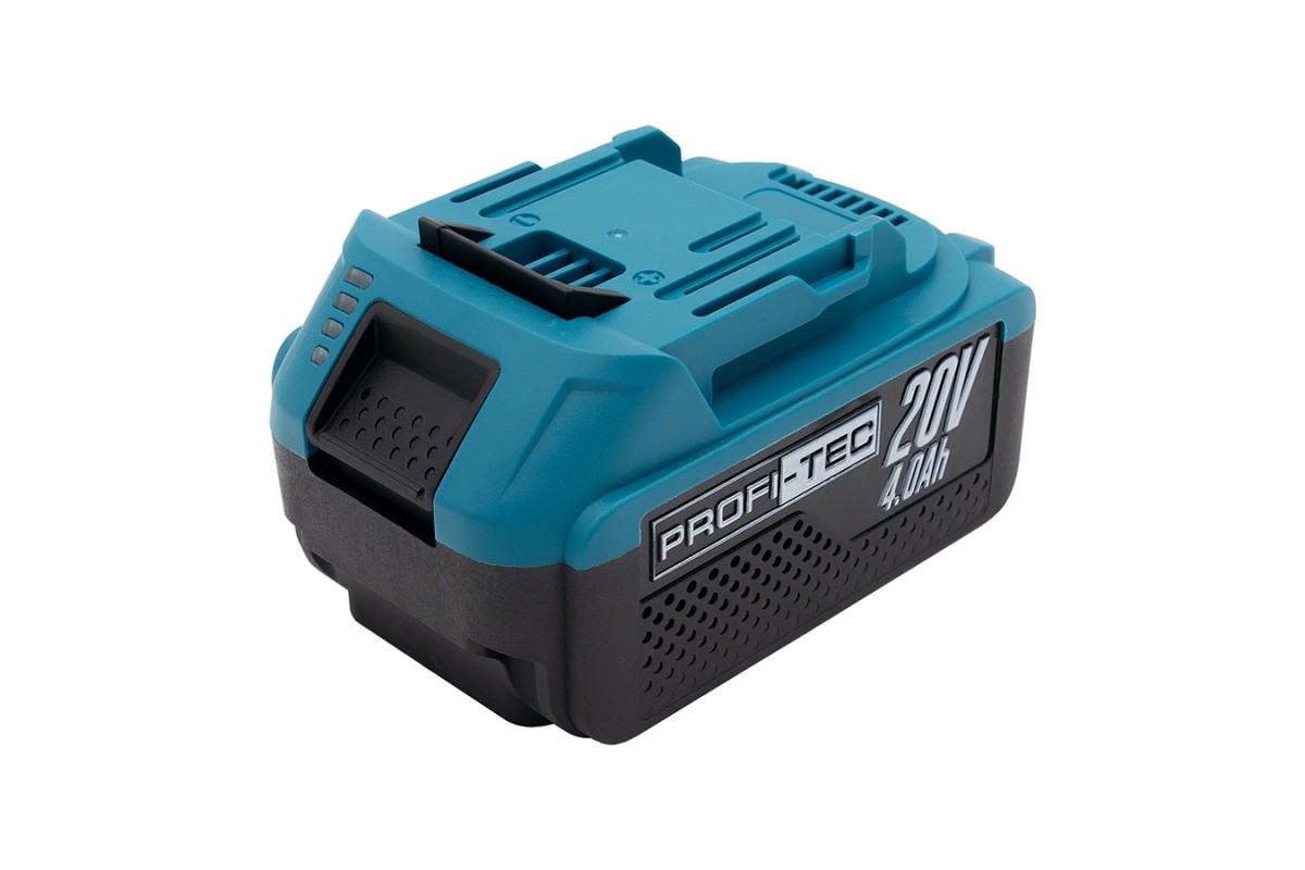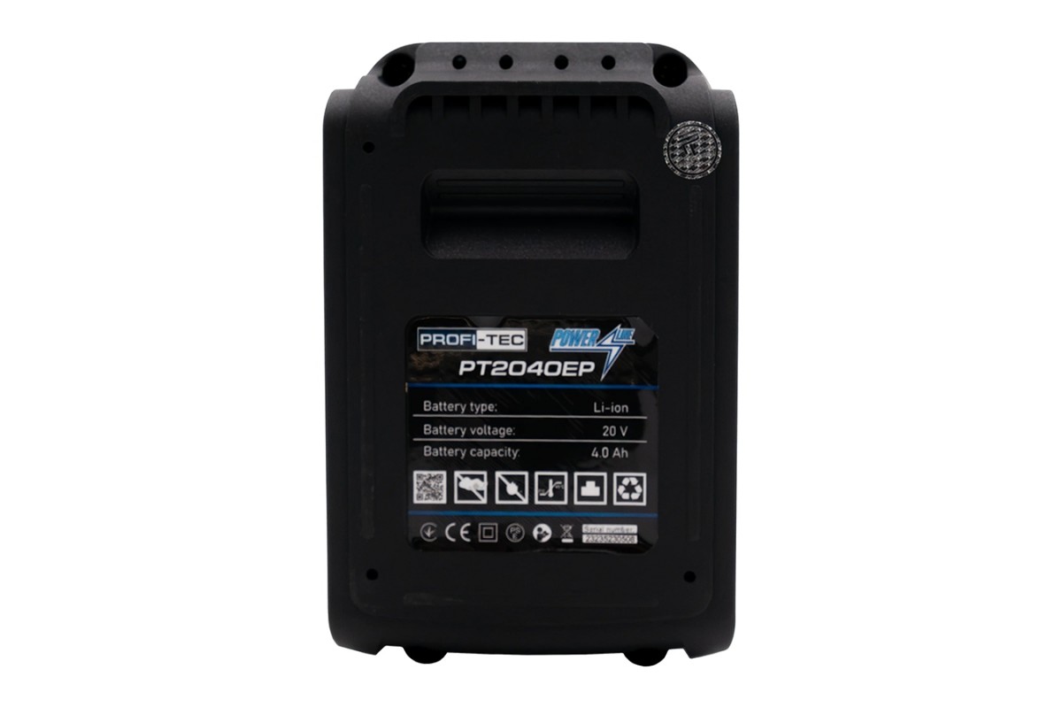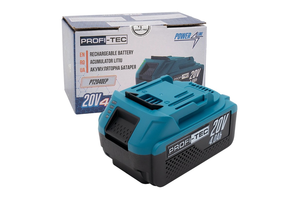 Акумуляторна батарея PROFI-TEC PT2040EP потужністю 20 В / 4.0 Аг, призначена для роботи на інструментах PROFI-TEC POWERLine, відрізняється надійністю та високою тривалістю роботи.