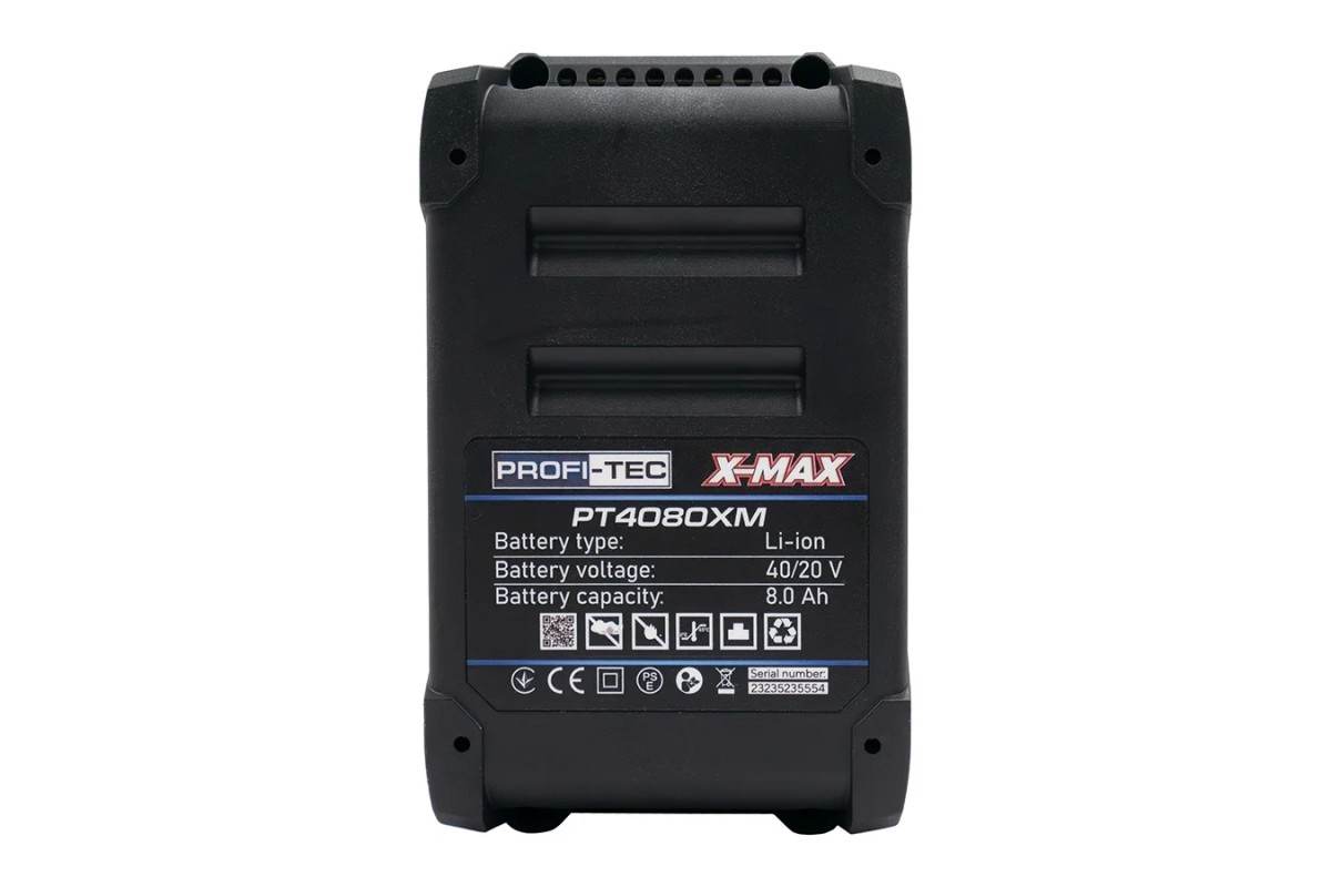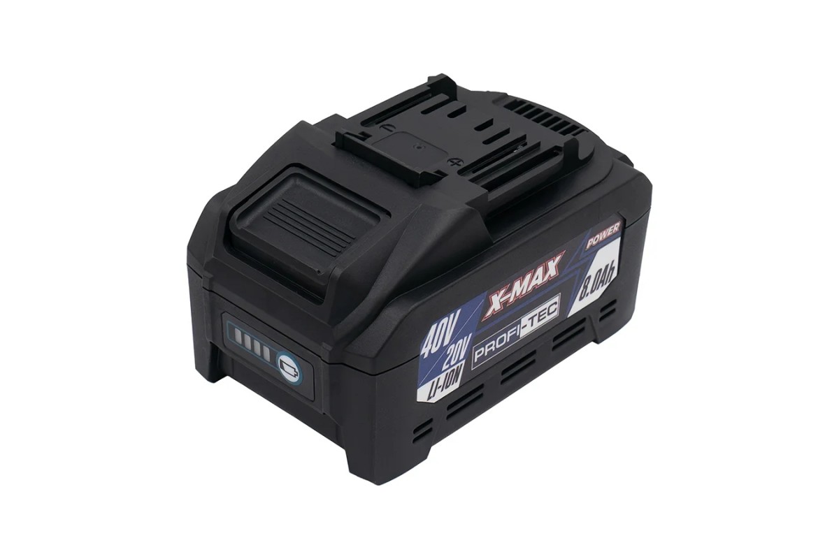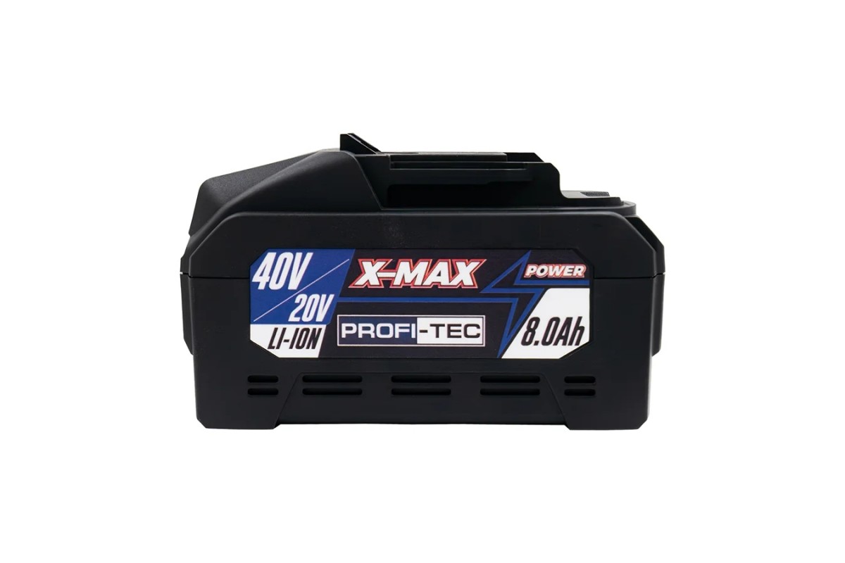 Акумуляторна батарея PT4080XM із лінійки X-MAX сумісна з усіма інструментами PROFI-TEC серії POWERLine, забезпечуючи стабільну та ефективну роботу.