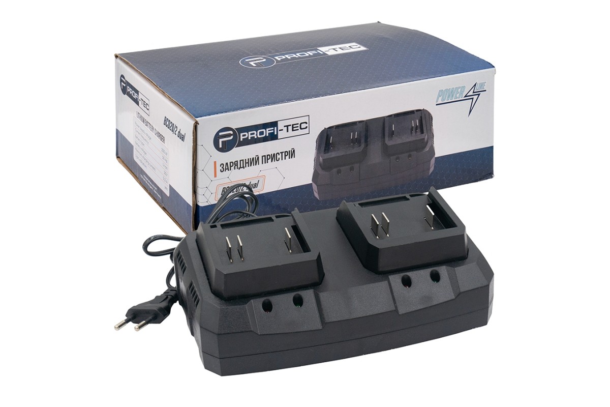 Двопортовий зарядний пристрій PROFI-TEC BCD20/2 dual – надійний пристрій, використовується для заряджання всіх типів акумуляторних батарей серії PowerLine та призначений для одночасного заряджання двох батарей.