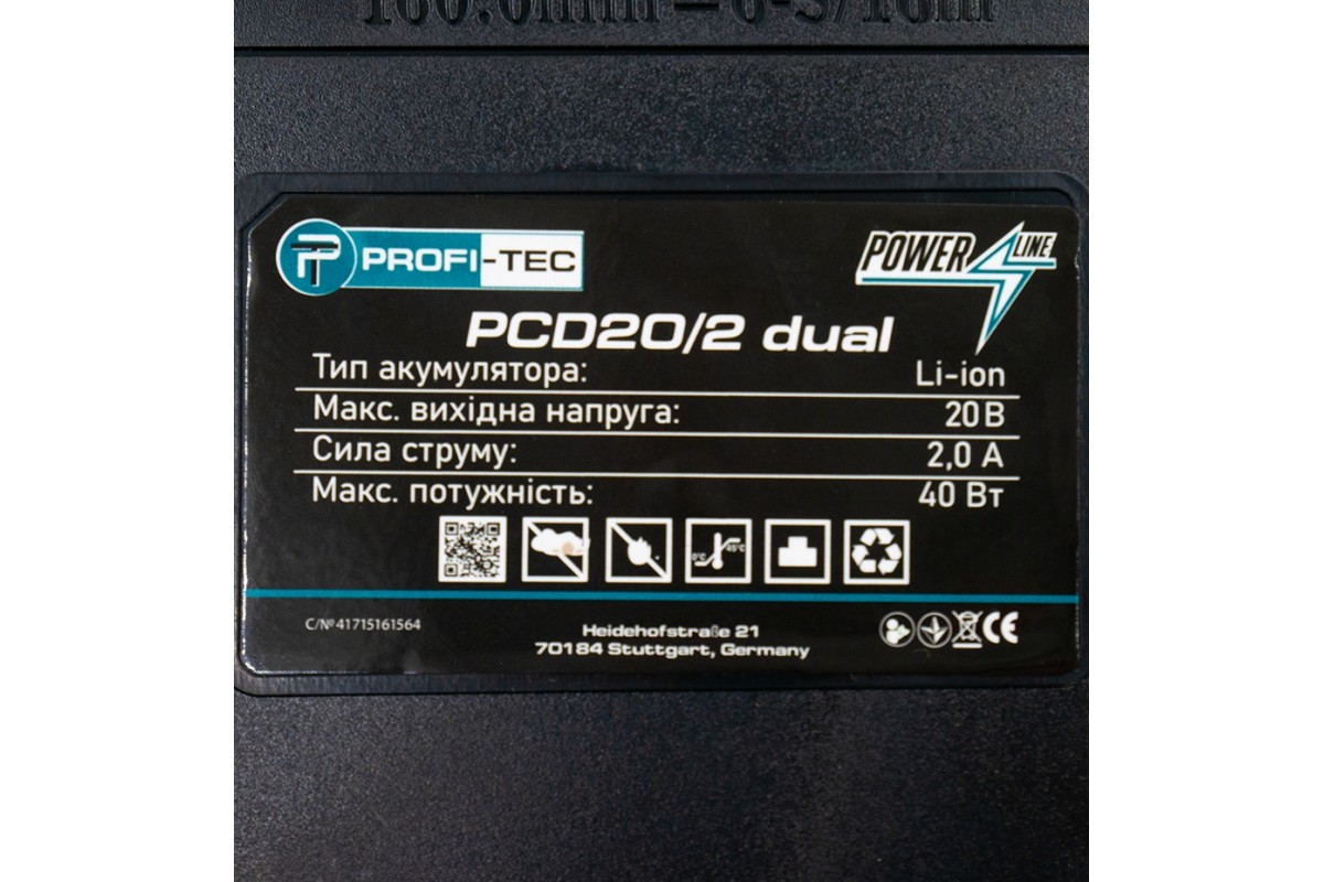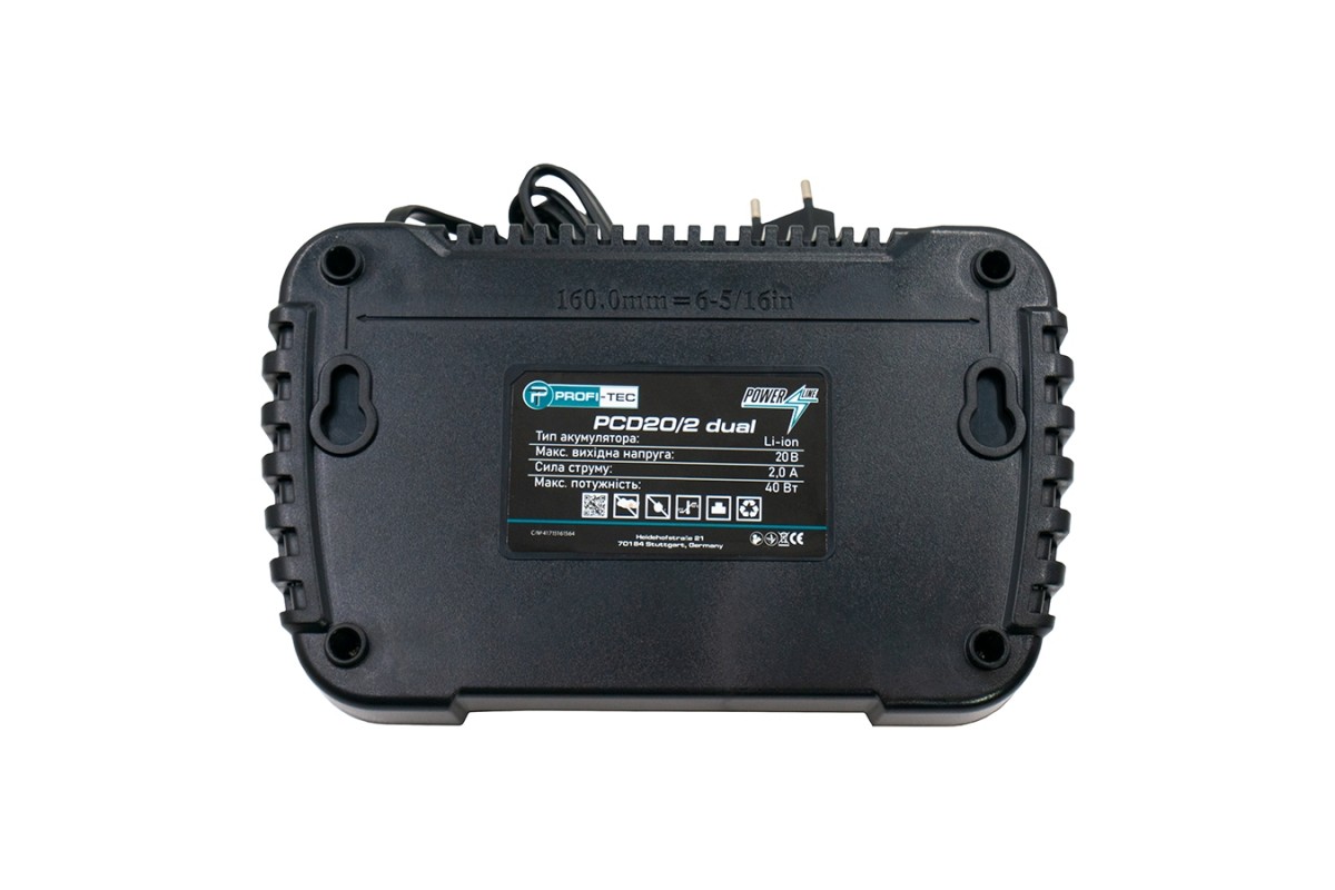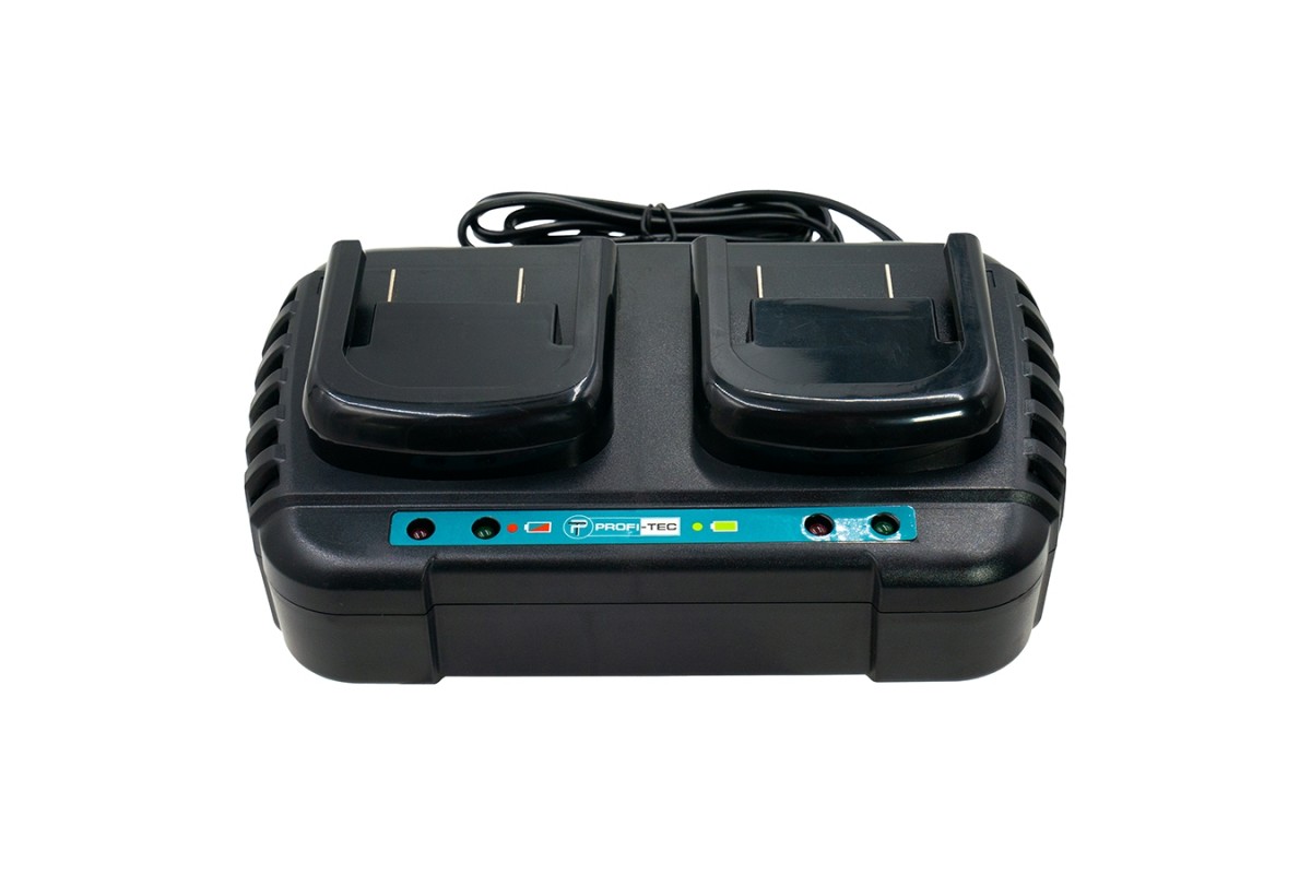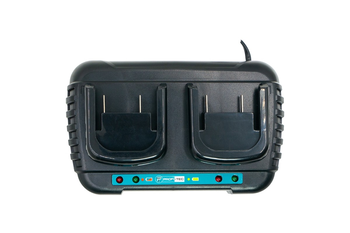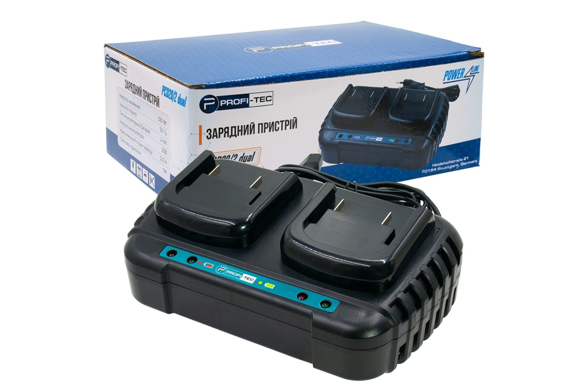 Двопортовий зарядний пристрій PROFI-TEC PCD20/2 dual – надійний пристрій, використовується для заряджання всіх типів акумуляторних батарей серії PowerLine та призначений для одночасного заряджання двох батарей.