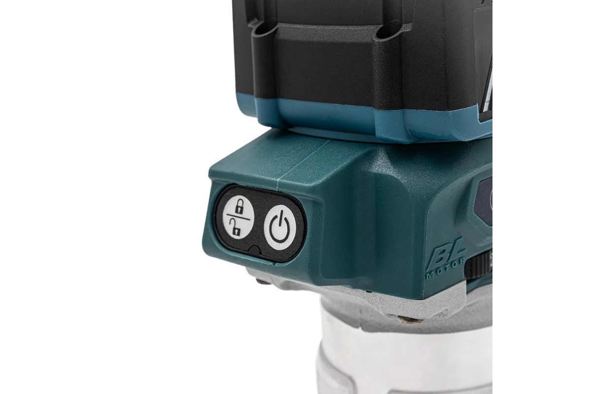 - Кнопка увімкнення/вимкнення з окремою кнопкою блокування запобігає випадковому запуску інструменту для захисту користувача та заготівлі;