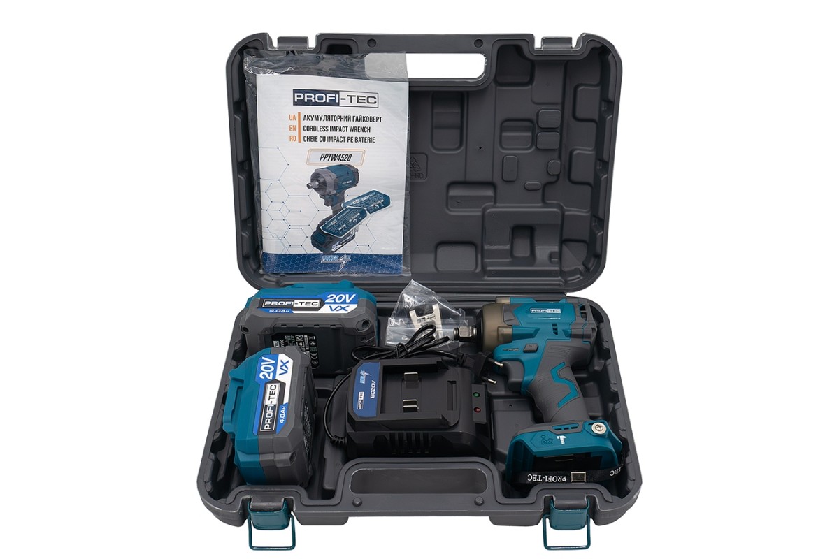 Акумуляторний гайковерт PROFI-TEC PPTW4520 POWERLine (2×PT2040VX (4.0 Аг), зарядний пристрій)