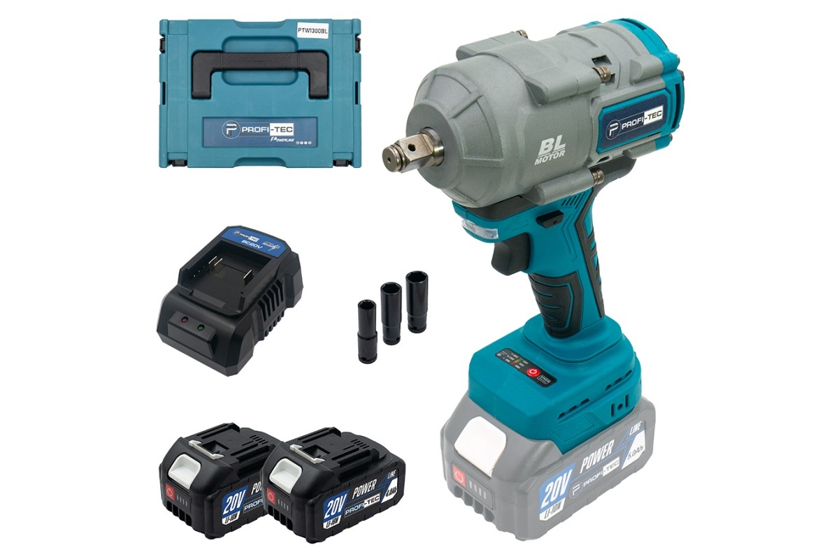Акумуляторний гайковерт PROFI-TEC PTW1003BL POWERLine (2×PT2040MP (4.0 Аг), зарядний пристрій)