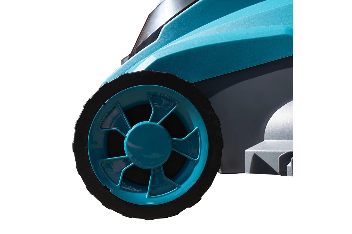 - Великі задні колеса (180 мм) і менші передні (150 мм) покращують маневреність і прохідність по нерівній поверхні.