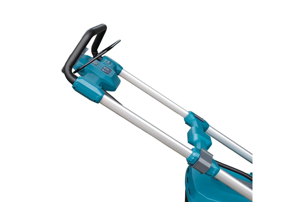 - Регульована рукоятка з трьома рівнями висоти дозволяє адаптувати косарку до зросту користувача для комфортного керування.