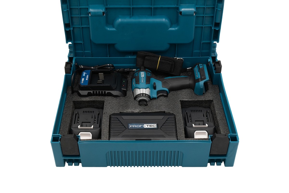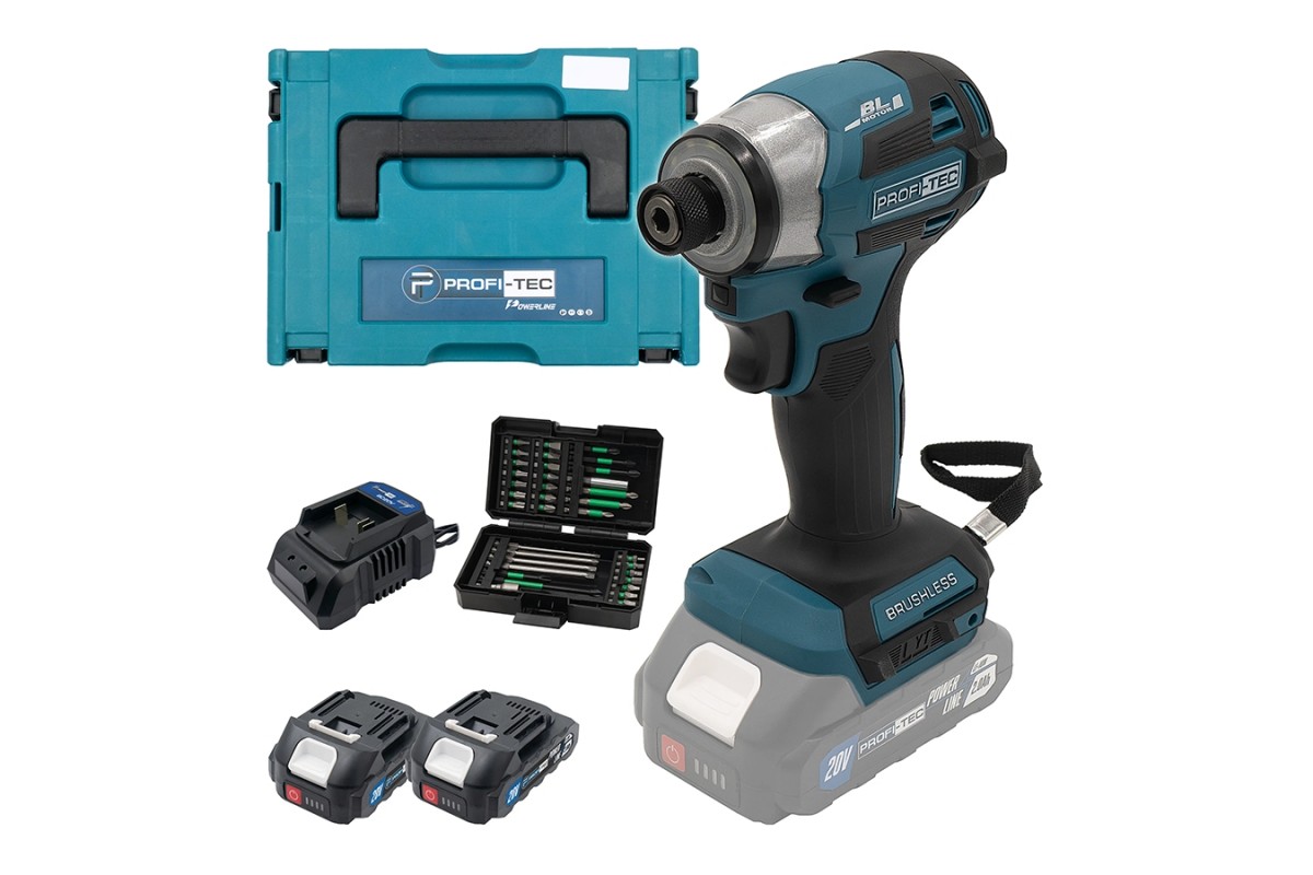 Акумуляторний імпульсний гвинтоверт PROFI-TEC PID1820BL POWERLine (набір біт, 2×PT2020MP (2.0 Аг), зарядний пристрій)