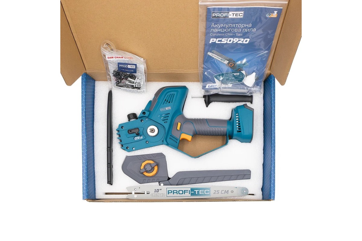 - Акумуляторна ланцюгова пила PROFI-TEC PCS0920;