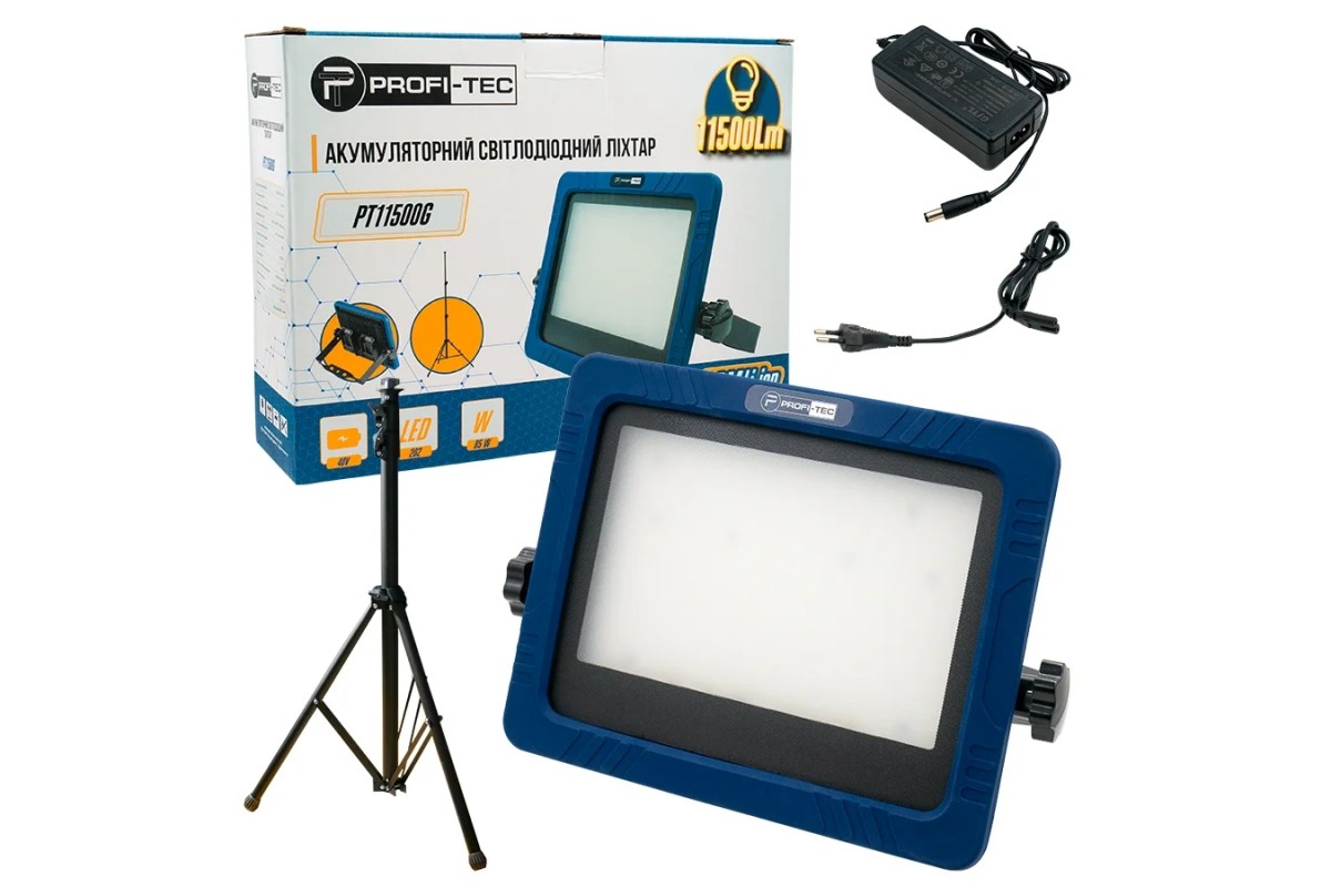 Акумуляторний гібридний прожектор на штативі PROFI-TEC PT11500G POWERLine (без акумулятора та зарядного пристрою)