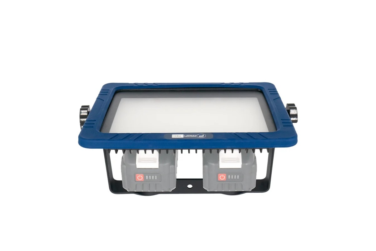 Акумуляторний прожектор PROFI-TEC PT11500G – потужний будівельний інструмент зі стійким корпусом, який витримує удари і вологу, що робить його ідеальним для використання в будівництві, ремонтних роботах та інших важких умовах. Універсальна конструкція, дозволяє як встановлювати ліхтар на будь-яку гладку поверхню, так і використовувати разом зі стійкою.