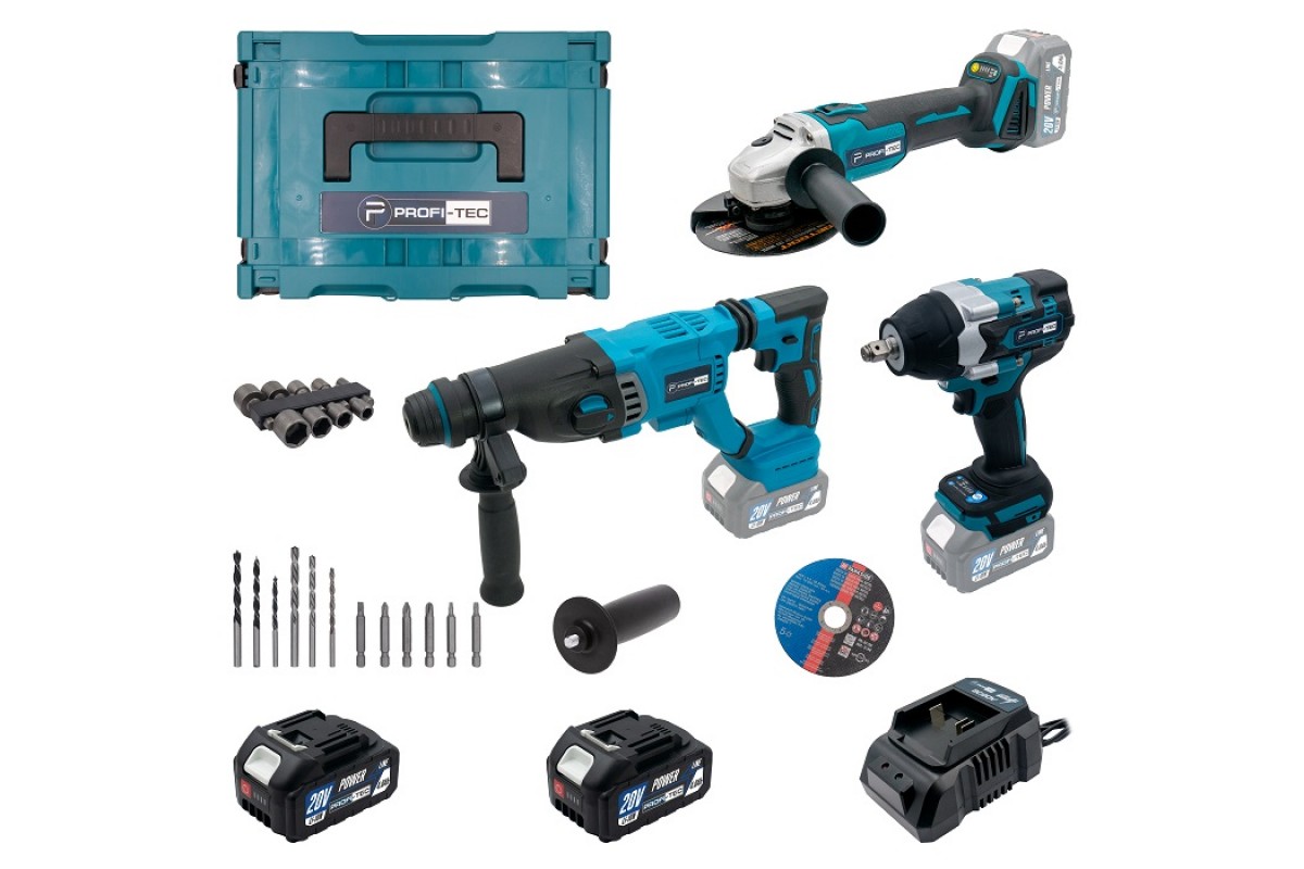 Акумуляторний набір інструментів PROFI-TEC Combo Set 3/5 POWERLine (PBH201BL, DTW800BL, DGA20BL) (2×PT2040MP (4.0 Аг), зарядний пристрій)