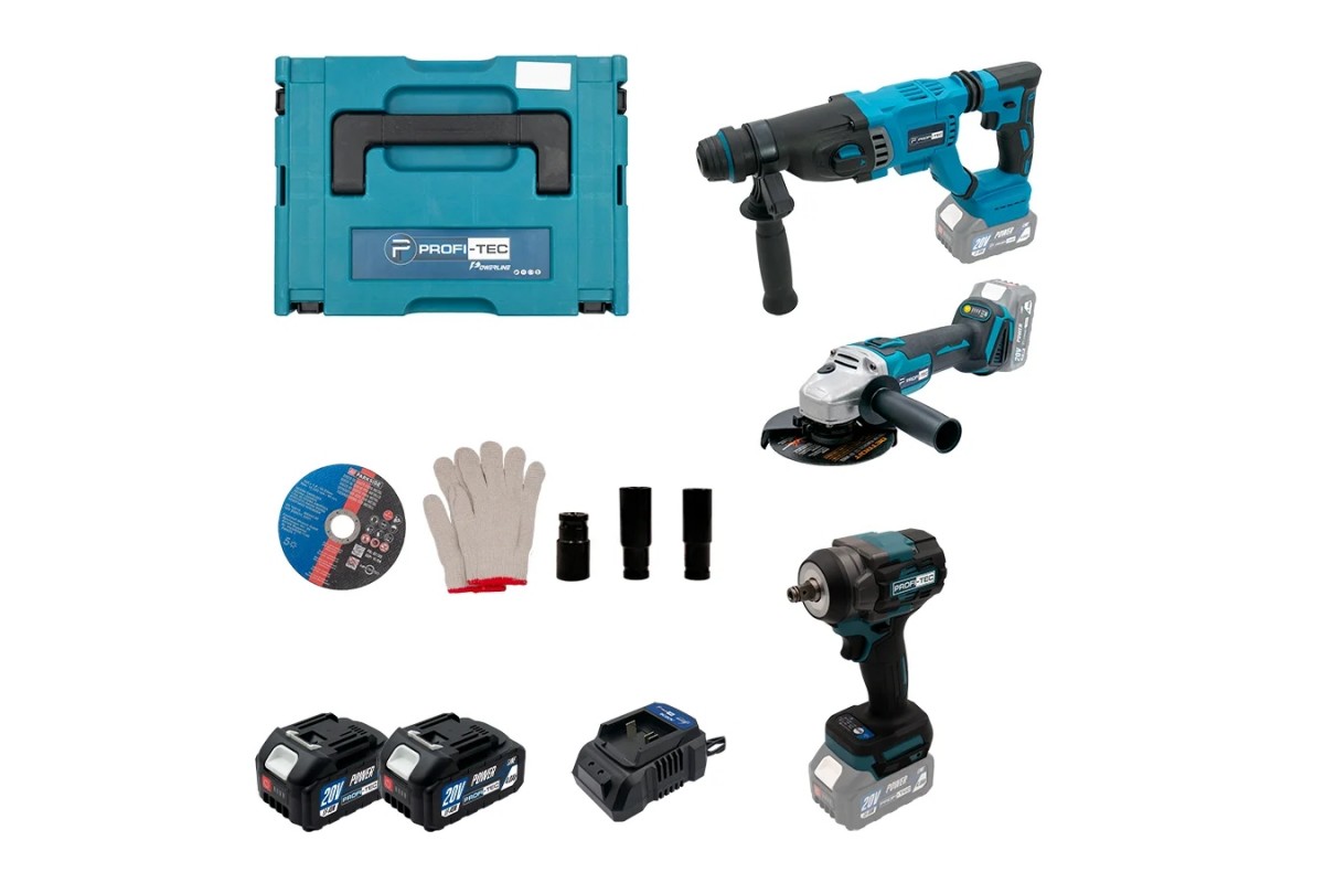 Акумуляторний набір інструментів PROFI-TEC Combo Set 3/7 POWERLine (PBH201, DGA20BL, PTW502) (2×PT2040MP (4.0 Аг), зарядний пристрій)