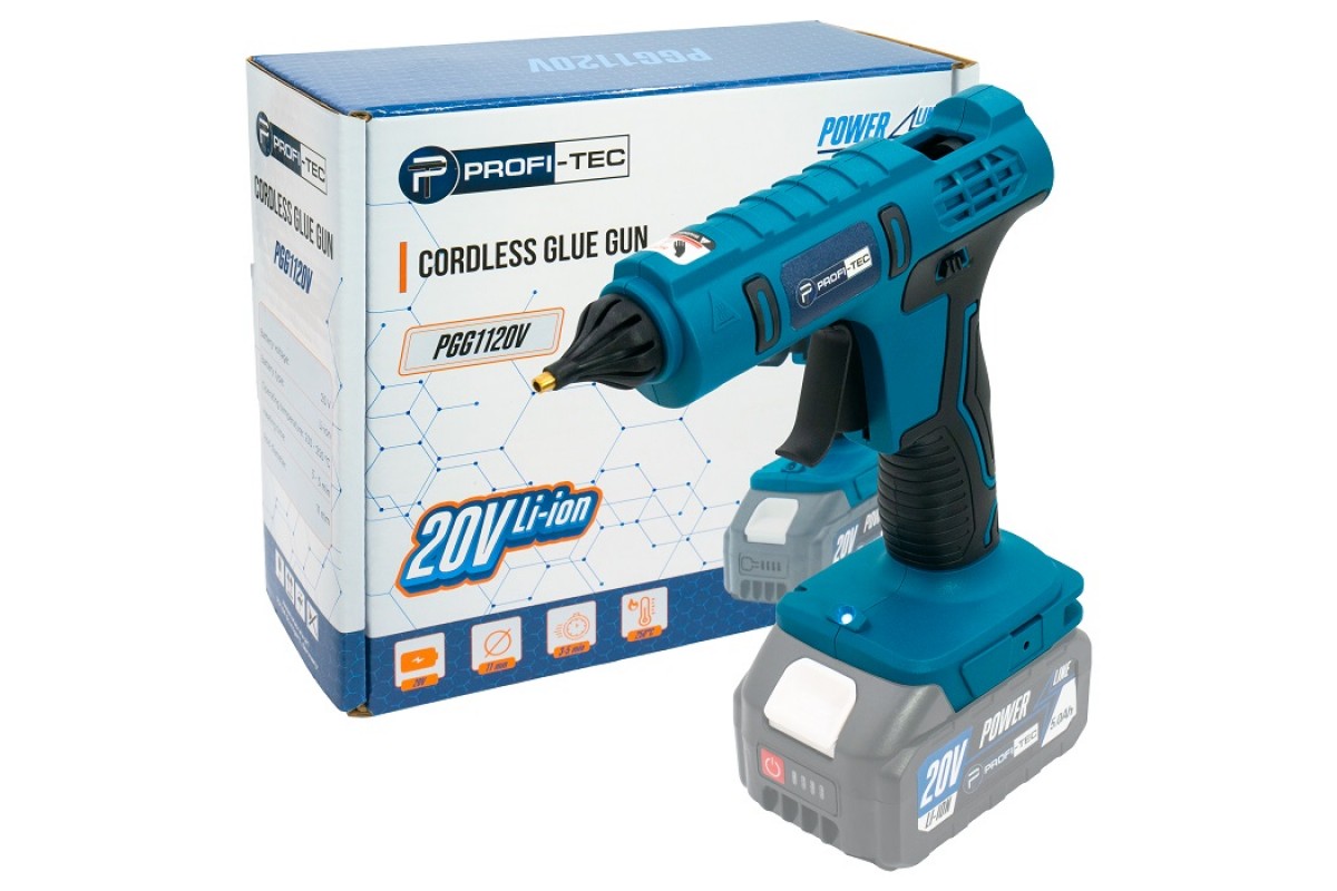 - Акумуляторний клейовий пістолет PROFI-TEC PGG1120V;