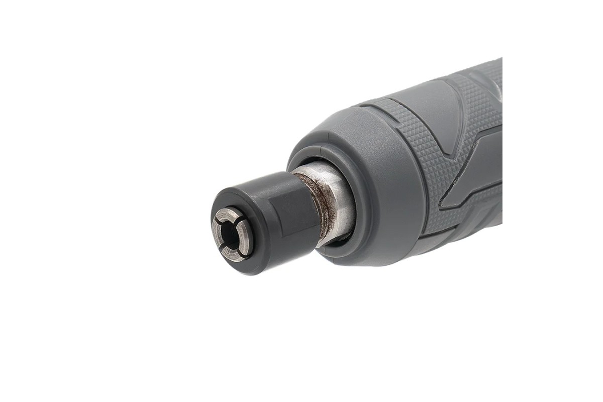 - Система фіксації шпинделя дає можливість швидко та безпечно змінювати робочі насадки з цанговим затискачем 6 мм.