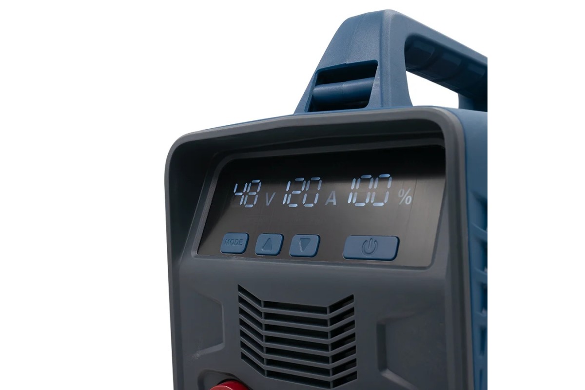 - Цифровий дисплей дозволяє точно налаштовувати зварювальний струм і контролювати параметри роботи апарату, що підвищує точність і зручність використання;