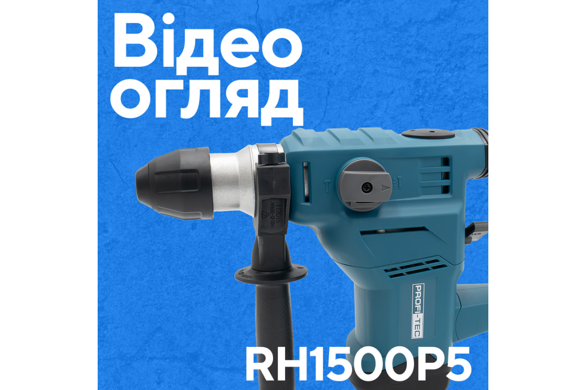 Перфоратор PROFI-TEC RH1500P5 – це функціональний електроінструмент, призначений для виконання широкого спектра монтажних і ремонтних робіт, що передбачають свердління з ударом, довбання та обробку твердих матеріалів, зокрема бетону, цегли та каменю. Завдяки поєднанню високої потужності, продуманої конструкції та зручного керування, модель відзначається ефективністю та комфортом у використанні.