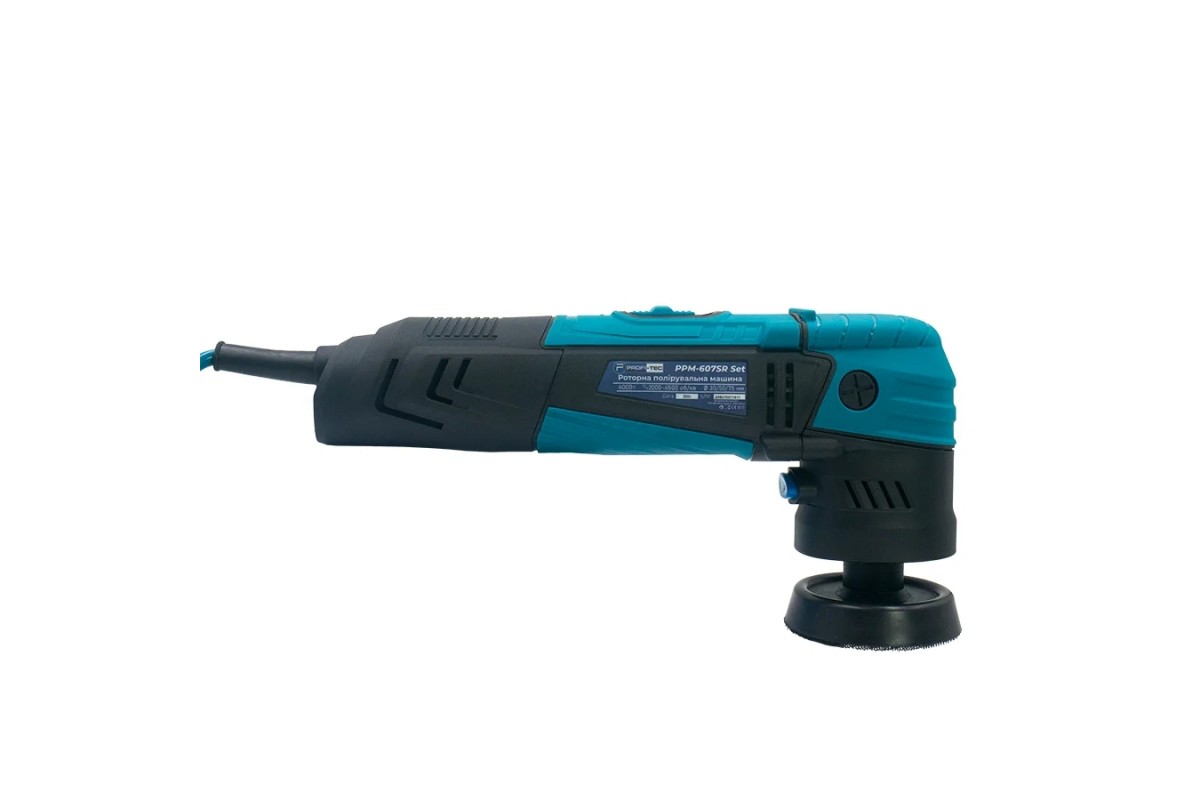 Роторна полірувальна машина PROFI-TEC PPM-607SR – компактний та потужний інструмент, призначений для обробки грунтованих, лакофарбових або незабарвлених поверхонь, металевих, пластмасових, дерев’яних виробів та деталей у виробничих та побутових умовах за допомогою полірувальних кіл з хутряною, тканинною або з абразивною робочою поверхнею.