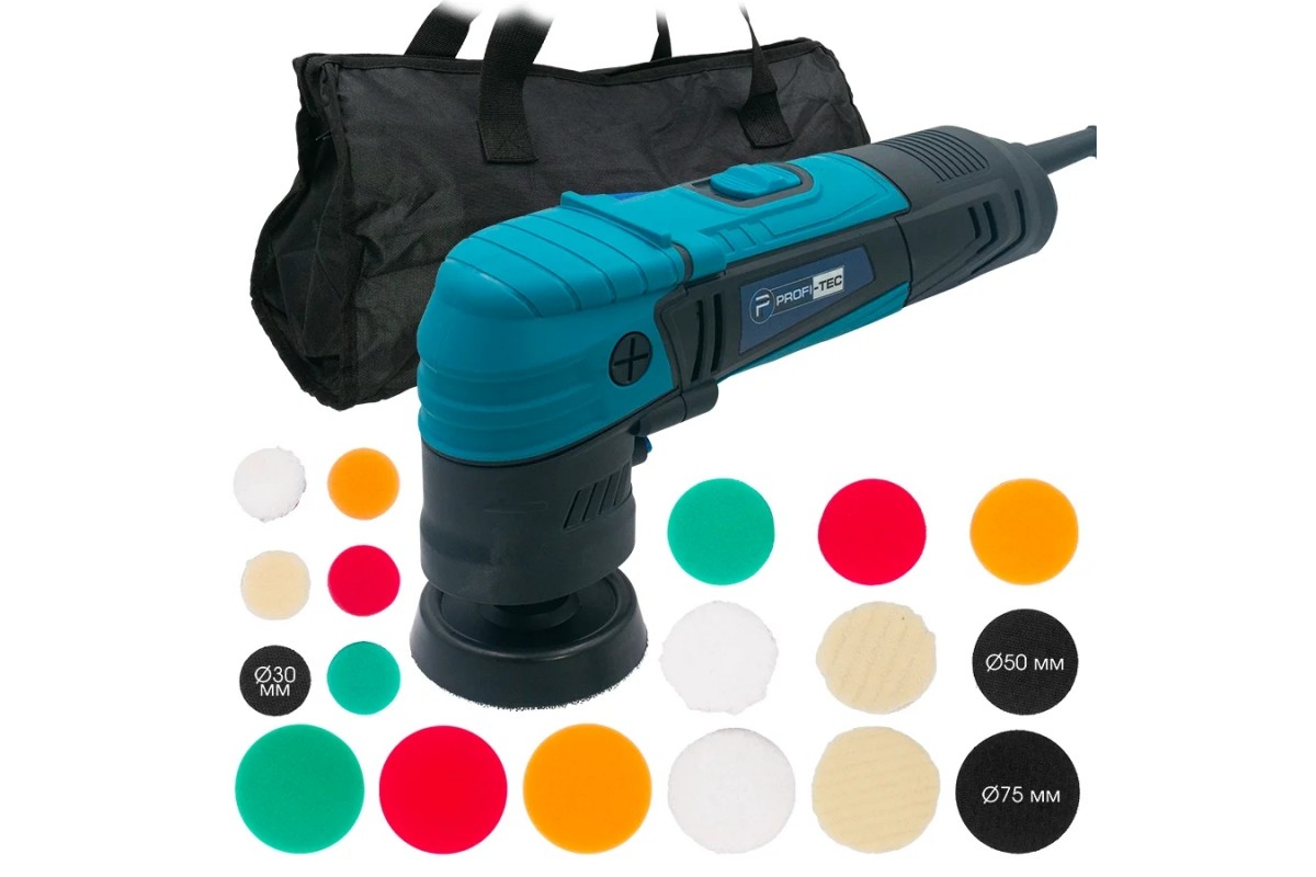 Роторна полірувальна машина PROFI-TEC PPM-607SR SET (600 Вт, диски 30 / 50 / 75 мм)