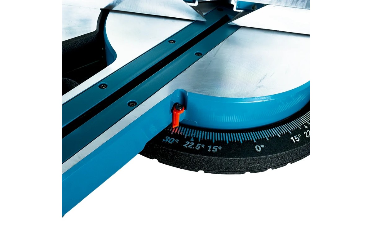 - Прецизійна шкала для кутових пропилів з гравірованими позначками забезпечує швидке налаштування кута та стабільну точність позиціонування.