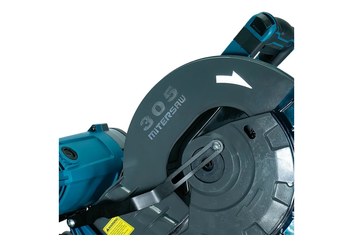 - Захисний кожух із посиленим корпусом надійно закриває робочу зону та забезпечує максимальну безпеку оператора під час пропилу.
