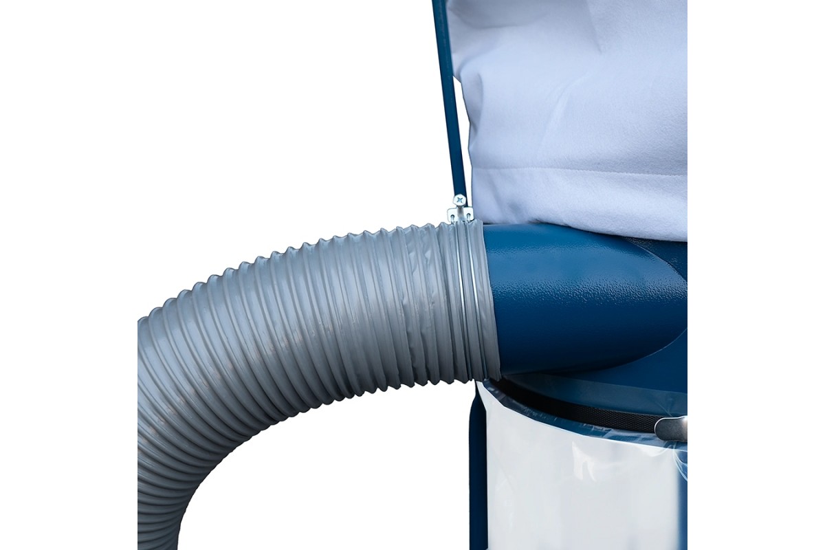 - Діаметр вентилятора 300 мм сприяє ефективному засмоктуванню стружки, забезпечуючи потужний і стабільний потік повітря під час роботи;