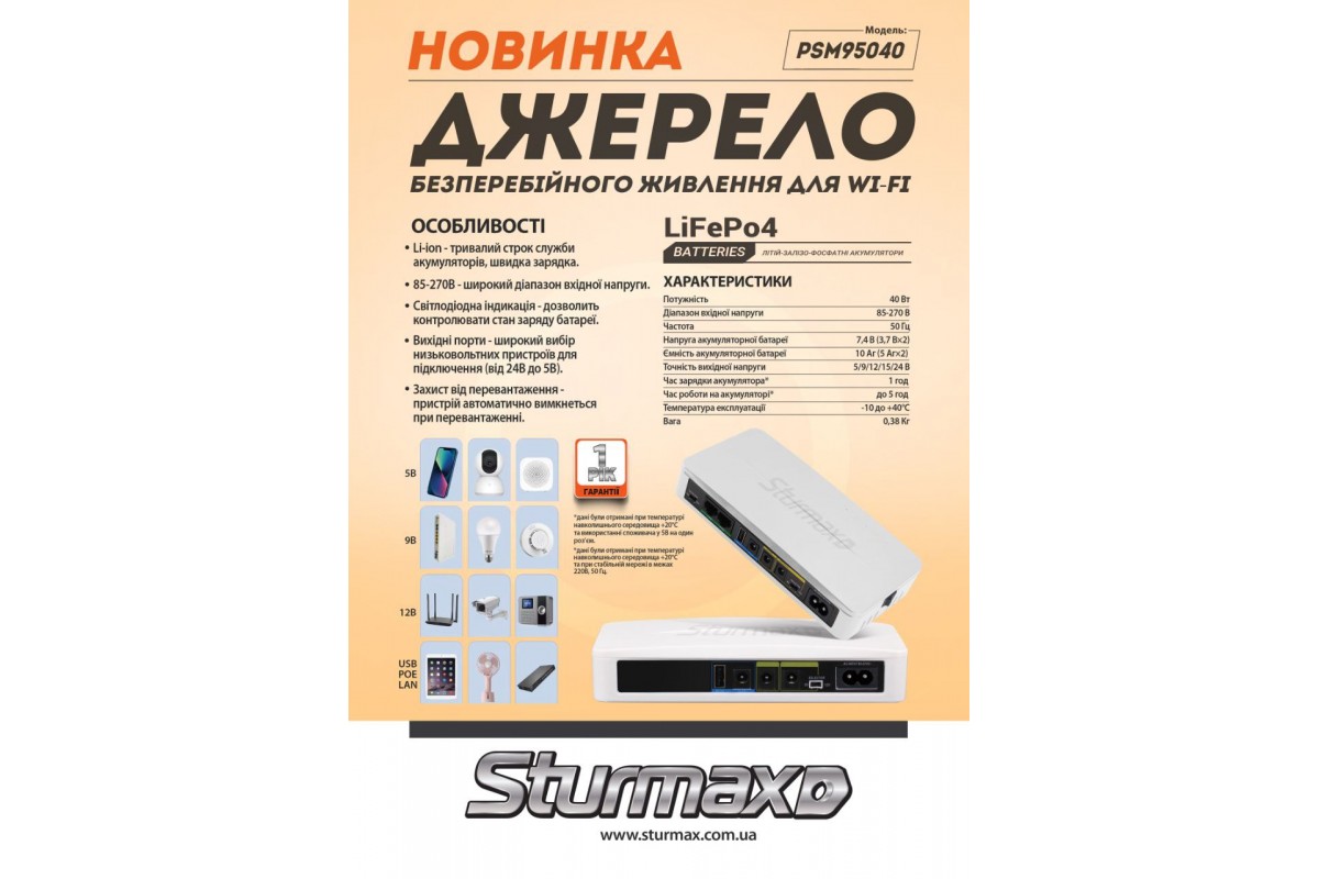 Sturmax PSM95040 Джерело безперебійного живлення для Wi-fi 40 Вт – Sturmax