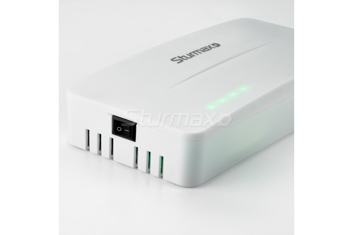 Sturmax PSM95040 – джерело безперебійного живлення для Wi-fi. Призначене для забезпечення живленням роутерів Wi-fi, систем охорони, камер, дисплеїв LED, записуючих пристроїв. Швидкий час заряду пристрою ( до 1 год) та тривалість роботи без електрики ( до 5 годин) задовольнить потреби користувача під час тривалих відключень світла.