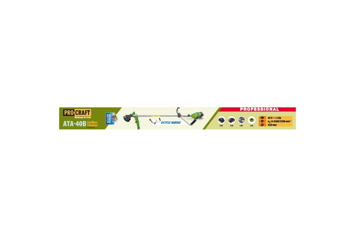 Аккумуляторный триммер Procraft ATA40B (1 АКБ и ЗУ) велосипедная ручка