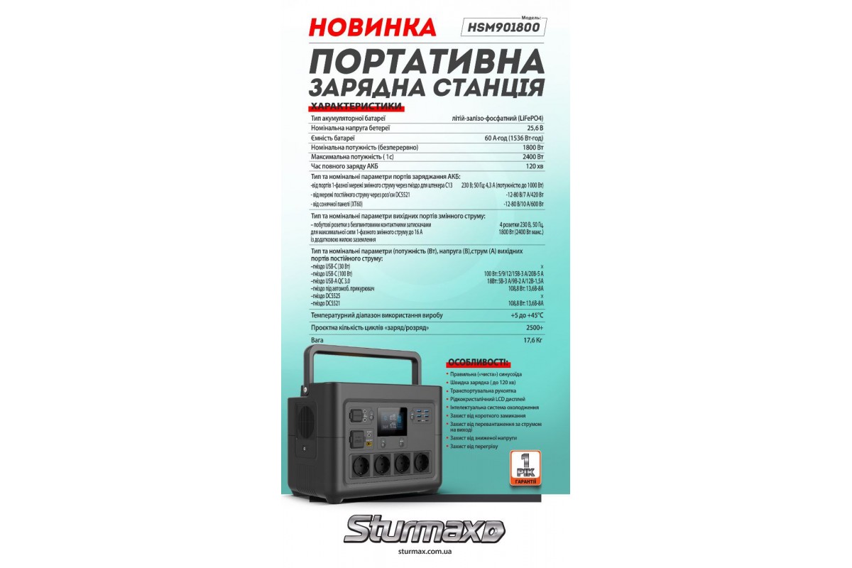 Sturmax HSM901800 Портативна зарядна станція 1800 Вт – Sturmax